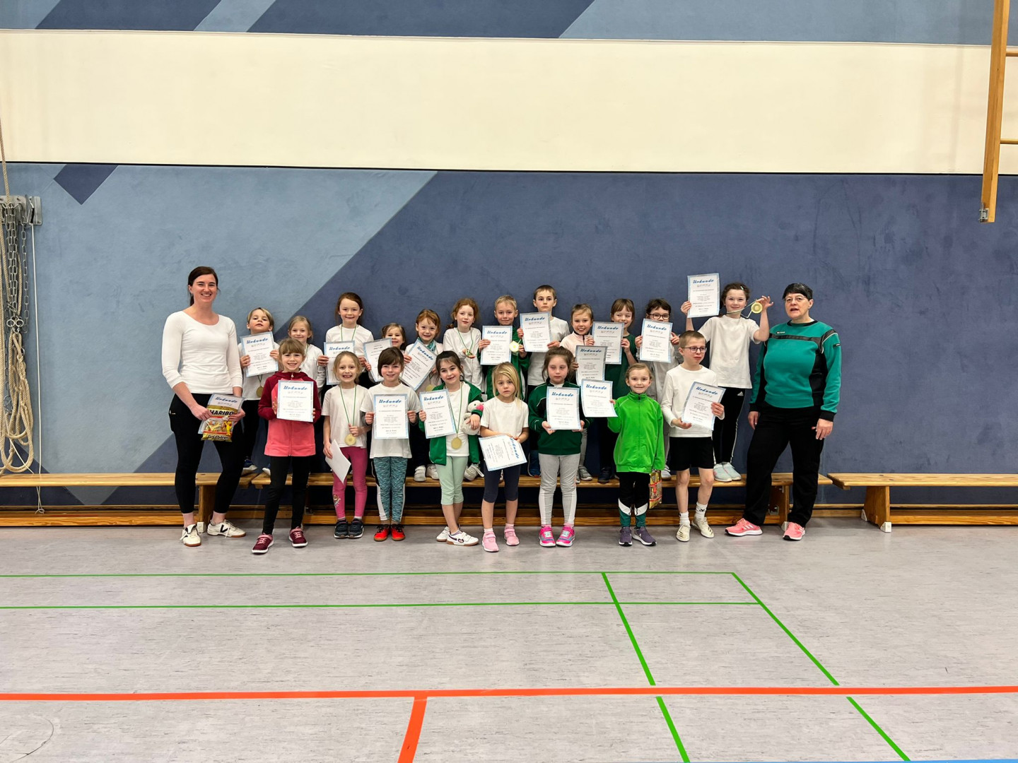 Das ist unsere Einsteiger-Gruppe. Hier trainieren Mädchen und Jungen von 5 bis 8 Jahre. Im Sinne der vom Landesverband vorgeschriebenen Kinderleichtathletik trainieren wir hier auf die Team-Wettkämpfe. Einzelwertungen und Einzelleistungen kommen jedoch durch zahlreiche Sportfeste nicht zu kurz.